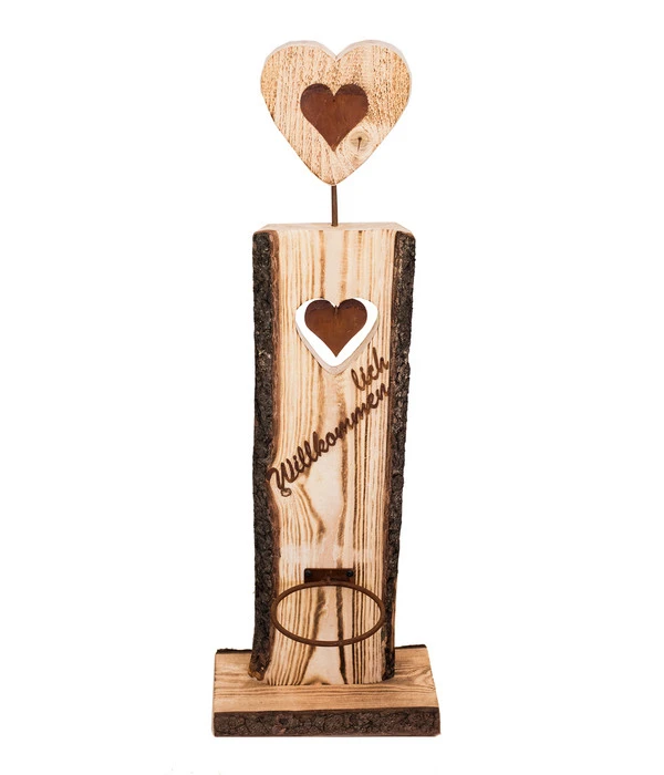 Sie sind auf der Suche nach einer ganz besonders schönen Dekoration für Ihren Vorgarten oder Ihrem Eingangsbereich? Dann ist der liebevoll gestaltete Herzständer Isabella aus der Kollektion von Dehner genau die richtige Wahl für Sie! Den einzigartigen Charakter des Ständers prägen sowohl die harmonische Kombination von Holz und Metall als auch ein rustikaler Touch und die liebevolle Herzornamentik. Daher empfangen Sie mit dem dekorativen Objekt Ihre Gäste stets mit einem netten und freundlichen Willkommensgruß. Zudem verleihen Sie Ihrem Eingangsbereich oder Vorgarten mit dem Herzständer Isabella eine individuelle und charmante Note.