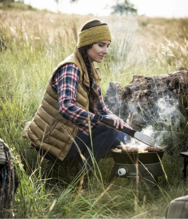 Dank der mitgelieferten Tragetasche kann der CADAC Gasgrill Safari Chef 30 LP LITE besonders einfach mitgenommen werden – in den Camping-Urlaub, zum Surfen an den See, zum Beachvolleyball an den Strand oder in den nächsten Stadtpark mit Grillmöglichkeit. Dank der einklappbaren Füße ist er besonders platzsparend, kann aber ebenso schnell in Betrieb genommen werden Und nach dem Grillen lässt er sich dank der Keramikbeschichtung GreenGrill und der herausnehmbaren Fettauffangschale leicht reinigen.