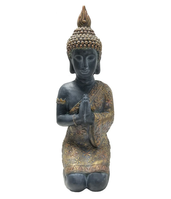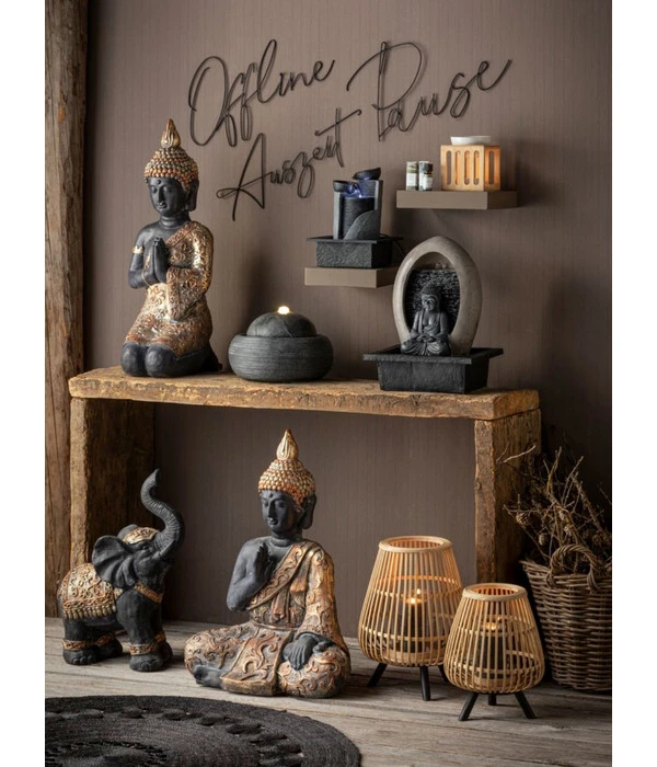 Wo immer diese Buddha-Figur kniet, symbolisiert sie steinerne Stärke. Schaffen Sie sich in Ihrem Zuhause einen Ort der Besinnung! Die tischhohe Buddha-Figur ist dafür das passende Gestaltungselement. Schlank und hoch nimmt sie ehrfurchtgebietend ihren Platz ein. Sie wirkt gediegen und edel. Eine so kunstvoll gearbeiteter Deko-Skulptur eignet sich für das Wohnzimmer genauso gut wie für das Schlafzimmer, für eine große Diele, für einen Wellnessraum oder für ein Bad. Der Dehner Magnesia-Buddha ist nicht nur eine tolle Dekoration für Innenräume , sondern verschönert auch Ihren Gärten.