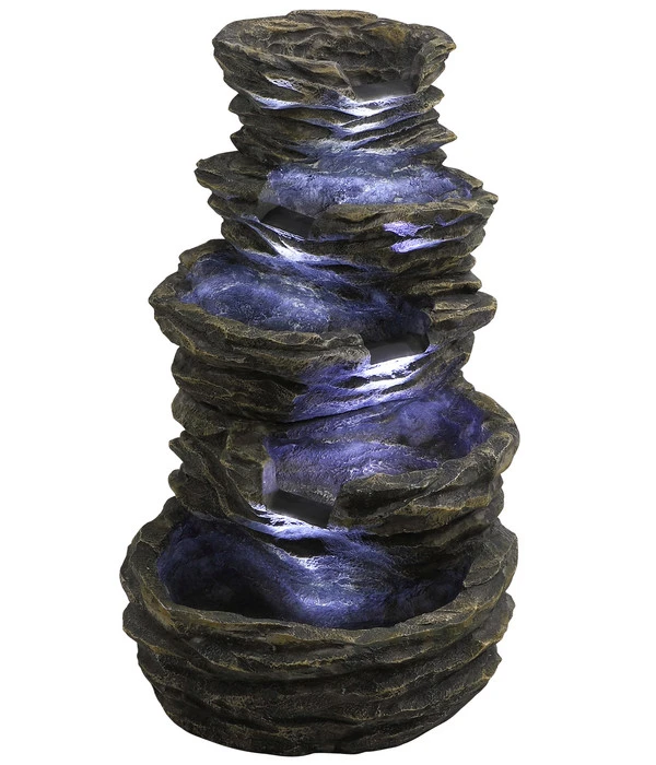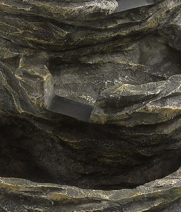 Ein Dehner Gartenbrunnen Roccia sieht zwar täuschend echt aus, als wäre er aus Stein entstanden. Tatsächlich handelt es sich hier aber um Polyresin, einen hochwertigen Kunststein, der in Form gegossen und danach künstlerisch bearbeitet wurde. Er ist äußerst robust und bruchfest. Wenn es abends langsam dunkel wird, verwöhnt der imposante Brunnen von Dehner das Auge mit einem beeindruckenden Special-Effect: die 5 kaltweißen LEDs beginnen zu leuchten und tauchen das gesamte Objekt in eine spannungsvolle Beleuchtung.