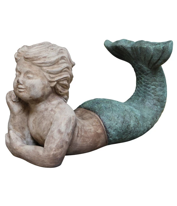 Die stilvolle Meerjungfrau aus Terrakotta kommt in der Nähe von Gewässern besonders gut zur Geltung und gibt Ihrem Teich ein maritimes Flair. Mit ihrer Schönheit verzaubert die Figur nicht nur Sie, sondern auch Ihre Gäste und lädt zum Träumen ein. Die Zweifarbigkeit der Terrakotta und die liebevoll ausgearbeiteten Details bezeugen die Markenqualität von Dehner und sorgen für ein ästhetisches Gesamtbild der Nixe. Sie verwandelt Ihren Garten in eine Oase der Entspannung und der Ruhe. Greifen Sie gleich zu und sichern Sie sich ein Exemplar. Kombinieren Sie die liegende Meerjungfrau von Dehner mit der ebenfalls erhältlichen aufrecht sitzenden Figur und erhöhen Sie damit die Wirkung dieser formschönen Figur in Ihrem Garten.