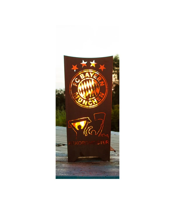 Seit der Spiel-Saison 1965/66 ist der FC Bayern München in der deutschen Bundesliga und glänzt seitdem konstant mit sportlichen Bestleistungen: Platz 1 in der Ewigen Tabelle der Bundesliga, Deutscher Fußballmeister, DFB-Pokalsieger und viele, viele andere Titel und Auszeichnungen konnte der Fußball-Rekordmeister einsammeln. Jeder Fan, der den Stolz auf seinen Club sichtbar demonstrieren möchte, kann das jetzt in seinem Garten tun – mit dem FC Bayern Feuerkorb „Rekordmeister“. Dieser coole Feuerkorb ist einer der offiziellen FCB Feuerkörbe. Er besteht aus stabilem, 2 mm dickem, natürlich gerostetem Stahl und ist in Bayern hergestellt.